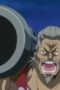 Making a mad dash for the Submerge with the food they stole, Luffy and the others have to get through some of the Navy’s upstart soldiers! Grount, whose arm holds incredible power, summons his training to challenge Luffy.